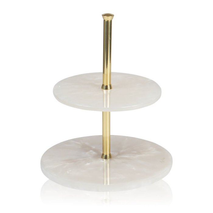 Porta Petit Four Dois Andares Branco Polido C/ Dourado Branco