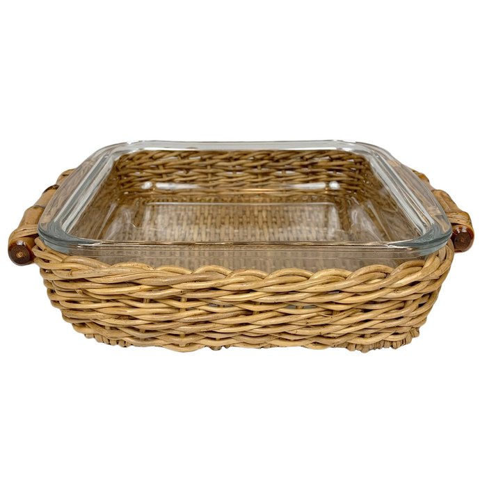 O Porta-Pirex em vime e bambu natural (inclui o próprio pirex).é uma peça super prática e charmoso para receber seus amigos e familiares com muito charme