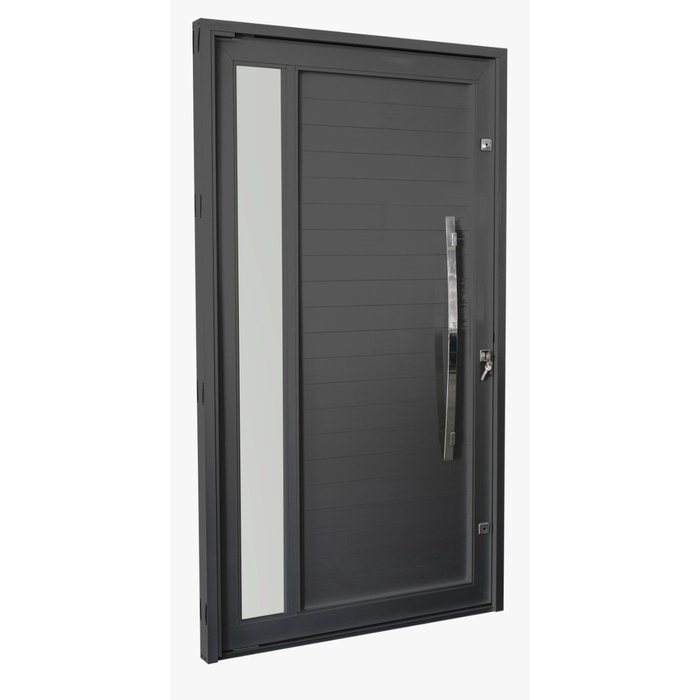 Porta pivotante alumínio preto lambril c/vidro lateral 1,28 x 2,28 C&B