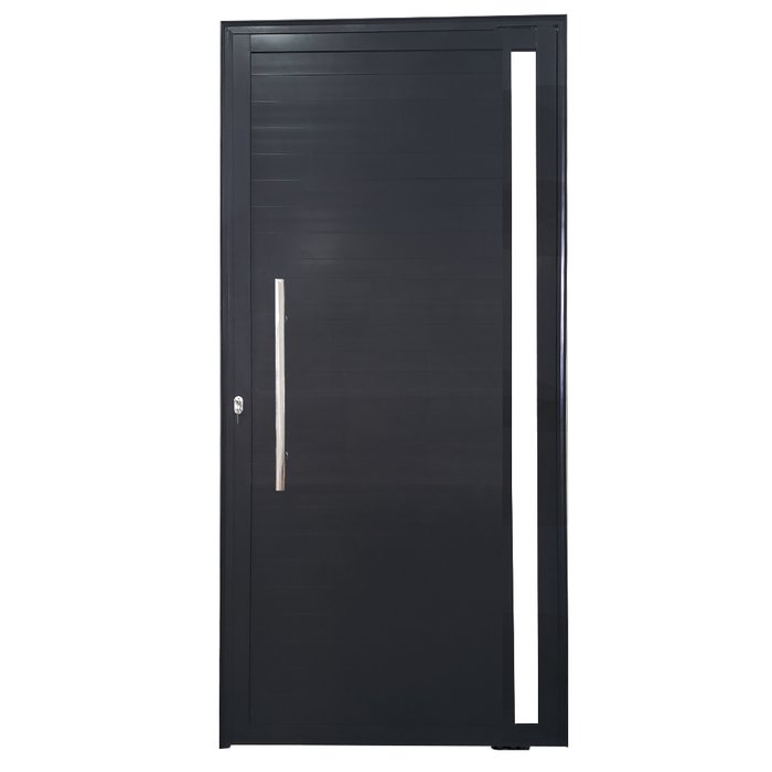 Fabricada em alumínio e revestida com pintura eletrostática preta, a porta de Alumínio Pivotante com Puxador e Vidro, vem sendo muito usada por ser muito resistente e por ter uma vida útil duradoura além de ter uma aparência futurista.