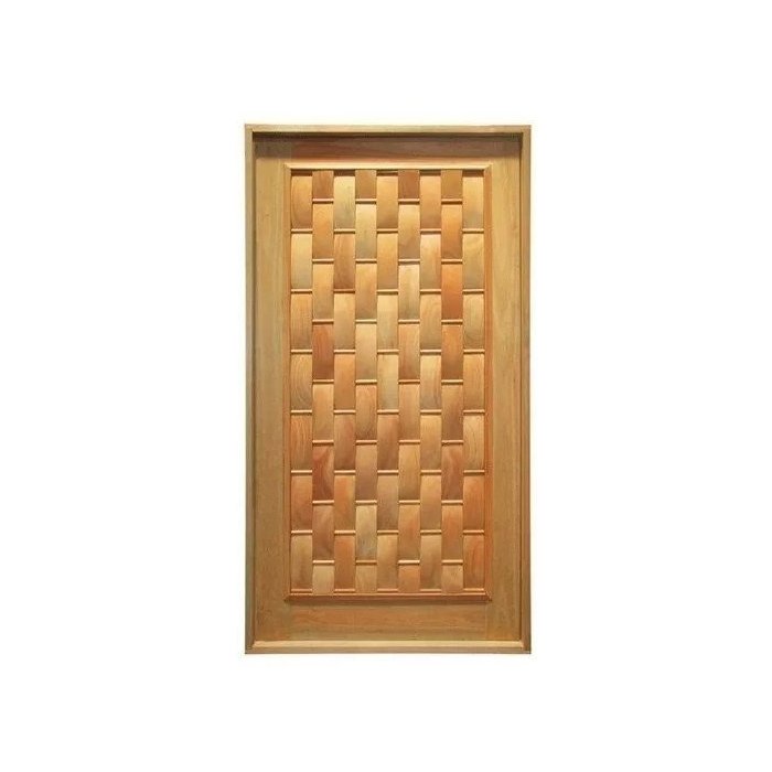Porta Pivotante de Madeira Maciça Mod. Couro 2,14 (a) X 1,28 (l) C/ Puxador e Fechadura crua na cor de madeira natural