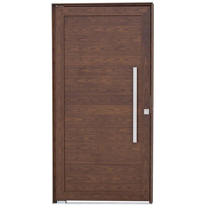Porta Pivotante Esquerda Com Lambri Horizontal E Puxador Alumifort 216x110cm Madeira