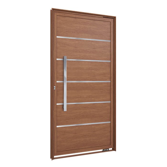 Porta Pivotante Lambri de Aluminio com Friso Puxador de 80cm 215x105 Lucasa Aluminio Madeira
