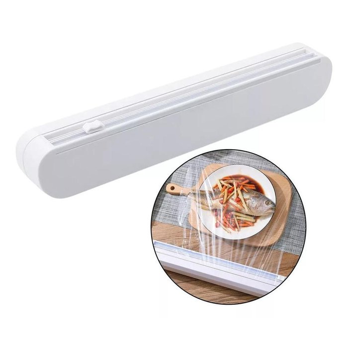 1x porta Plástico Filme Papel Alumínio Com Ventosa E Cortador