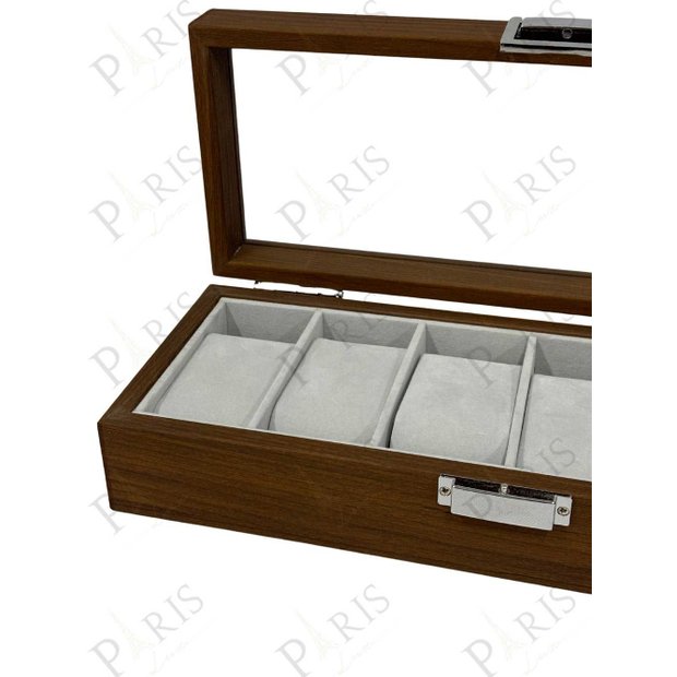 Porta Relógios em Madeira e Vidro Marrom 6 Divisórias 31cm 14664-PL