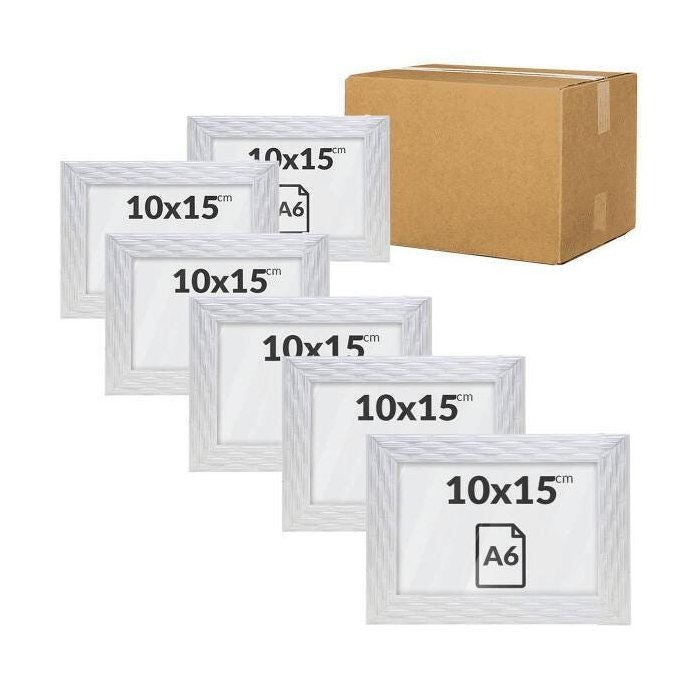 Porta retrato no formato 10x15, na cor branco com detalhe em relevo de palha, 10 unidades.