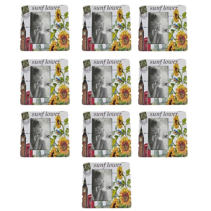 Porta Retrato 10x15 Fotografia Kit 10 Unidades Decoraçao Moldura Londres Girassol Enfeite Casa Mesa Estante Lembrança Multiuso Prateleira