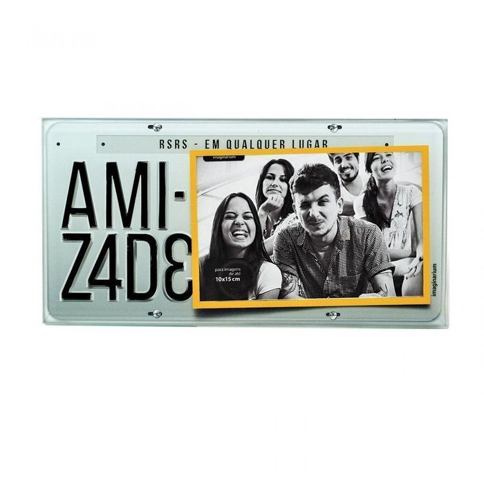 Lugar de placa não é só nocarro. Se você tem um amigo(a) que gosta de fundesign, gosta de inovar na formade expor fotos pelos ambientes, o porta-retrato Placa da Amizade é o presenteperfeito para preencher estes quesitos e mostrar que a amizade pode estar emqualquer lugar, inclusive com a moldura de uma placa. Para 1 foto 10x15.