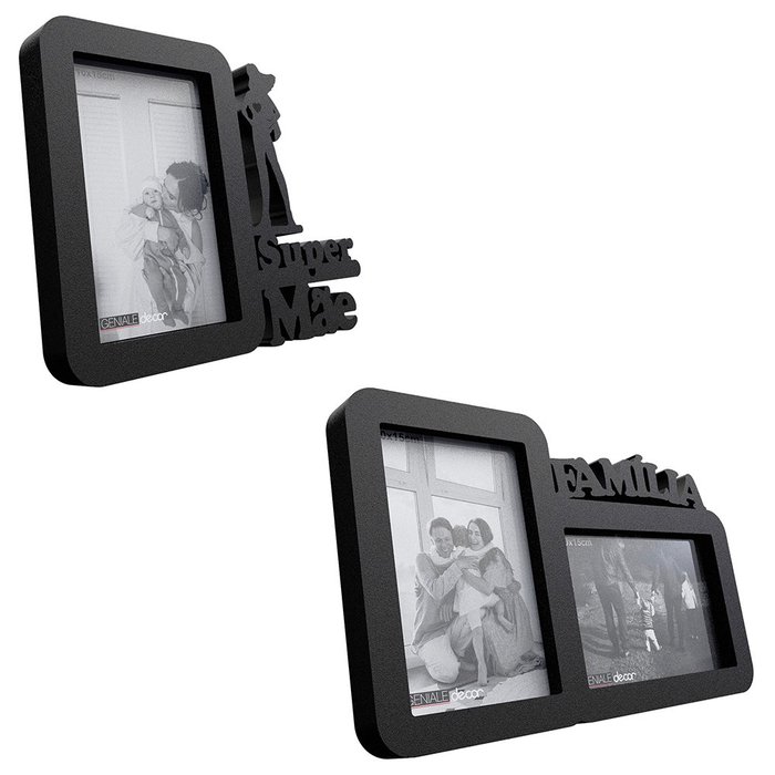 Porta Retrato 2 Conjuntos Especiais Para Mãe Familia Unida:Preto Preto
