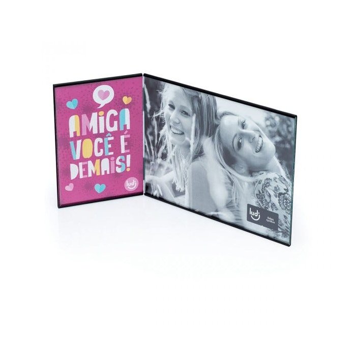 Porta Retrato Amiga Demais para Duas FotosAmizade sincera é tudo de bom não é mesmo Algo tão raro merece ser valorizado e cultivado, presenteie sua amiga com este Porta Retrato Amiga Demais.Fabricado em vidro e metal de excelentes qualidades tem espaço para duas fotos, uma 9X13cm e outra 13X18cm, ou se preferir exponha somente uma foto e deixe à mostra o texto colorido de forma divertida: Amiga Você é Demais.O Porta Retrato possui duas dobradiças que o torna articulável para que você exponha da maneira de achar melhor.Surpreenda sua amiga de uma maneira muito criativa e inteligente com este Porta Retrato Amiga Demais, possui cores neutras, isto ajuda na combinação de decoração de qualquer ambiente ou tema, além disso, você será lembrada todas as vezes que sua amiga olhar para este porta retrato.Especificações:Peso: 380g.Dimensões: 27,5cm (largura) X 12,8cm (altura).Material:Metal e vidro.Conteúdo:01 unidade.Cor:Preto.Cuidados Especiais:Recomendamos limpar com pano seco. Teme químicos e abrasivos.Garantia:90 dias para defeitos de fabricação, caso o produto chegue com avarias, pedimos a gentileza de entrar em contato conosco o mais rápido possível para que possamos providenciar a troca.