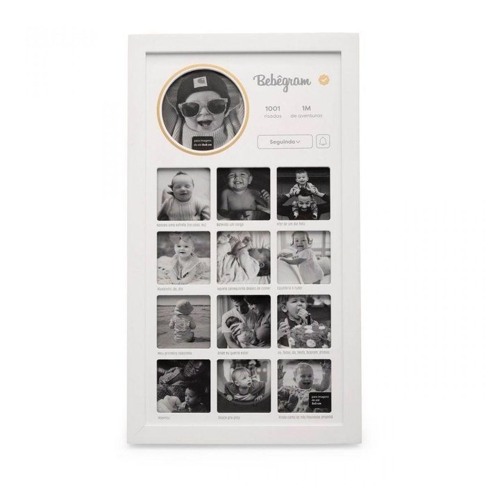 E se você pudesse misturar a nostalgia de revelar fotos com a tecnologia das redes sociais? Parece difícil, mas nesse produto é possível! Desenvolvemos esse lindo porta-retrato similar a um feed do Instagram pensado justamente para você encher de fotos do seu bebê, como se fosse a rede social!