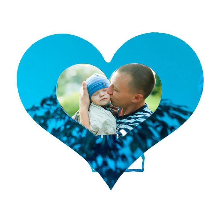 Porta Retrato Coração em Acrílico Espelhado Azul