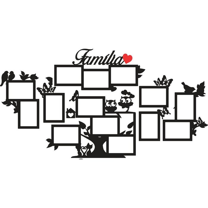 Porta Retrato De Parede Família 14 Fotos 10 x 15 Mdf Preto Coração Vermelho