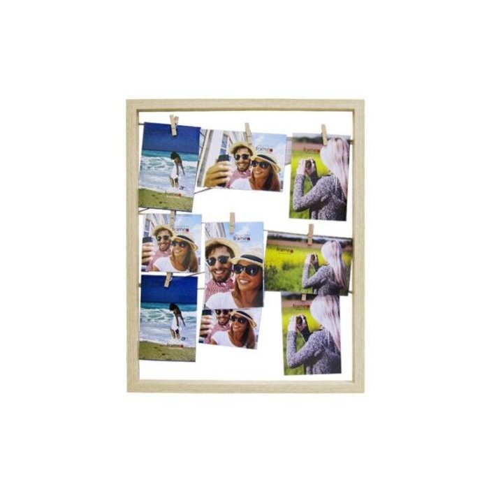 Tamanho aproximado: a:50xl:40cm Peso aproximado: 715g Tipo de produto: porta retrato/mural modelo varal com moldura tipo madeira Cor: marrom Composição: plastico