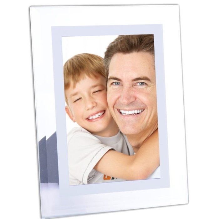 Porta Retrato elegante de vidro para decoração, ideal para presentear toda a família, oferecer como brindes ou lembrancinhas. O Porta Retrato é todo confeccionado em vidro, com moldura metálica. O suporte de apoio metálico do porta retrato permite que suas fotos 20x30 sejam expostas na vertical.