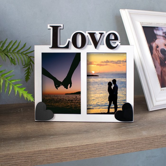 Porta-Retrato Decorativo em MDF Branco e Preto Love - 10x15 cm -