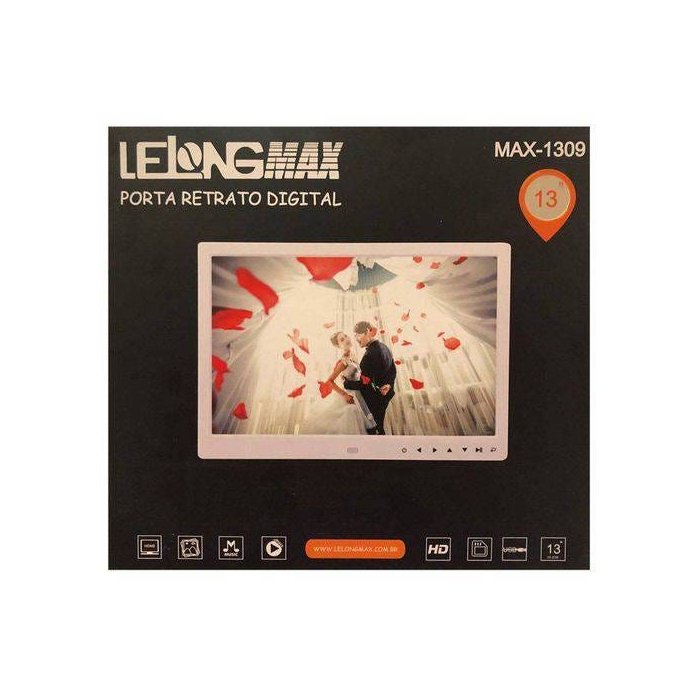 Porta Retrato Digital Preto Tela 13 Mp3 Lelong