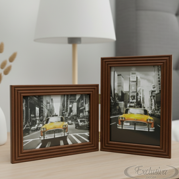 Porta Retrato Duplo 10x15 Moldura Ripado Marrom Decoração