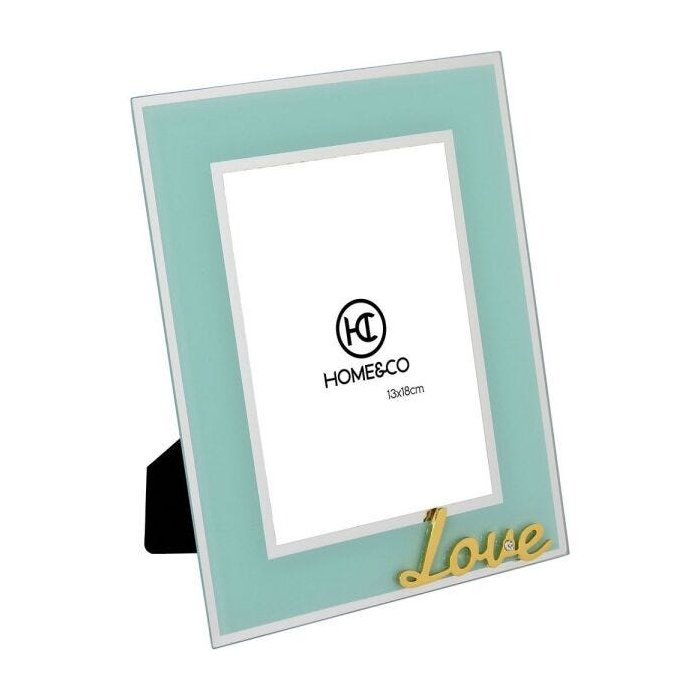 Porta Retrato em Vidro Milos Espelhado Azul Love 13x18cm
