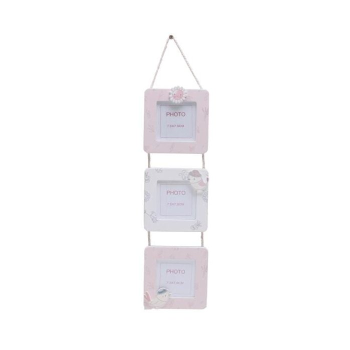 PORTA-RETRATO MADEIRA 3 FOTOS ROSA 7,5x7,5cm
