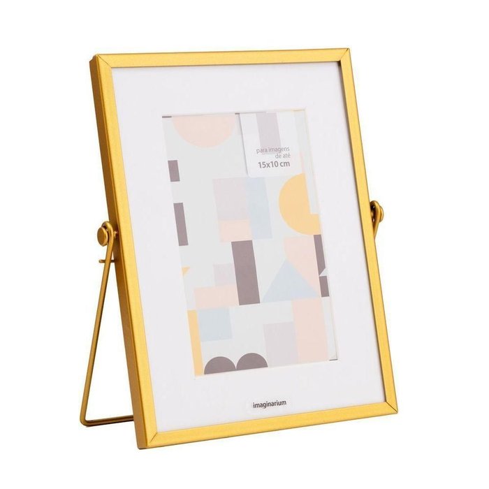Em metal na cor dourada e em formato retangular, ele acomoda 1 foto de até 10 cm x 15 cm (na vertical), sendo a moldura para foto perfeita para se ter sobre o aparador, estante, escrivaninha, mesa de apoio ou mesinha de cabeceira.
