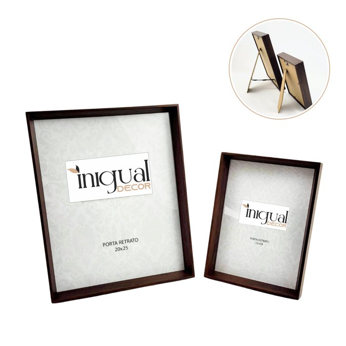 Porta Retrato para Foto 13x18cm 20x25cm Mdf Marrom Kit 2pc Marrom
