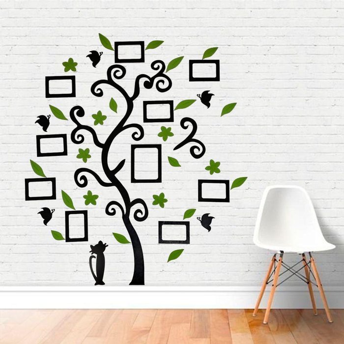 Porta Retrato Parede Mdf-preta Com Folhas E Flores Vermelhas