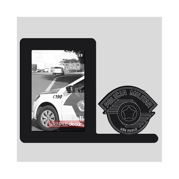 Porta-retrato Polícia Militar São Paulo Presente Criativo Para Policial Preto Preto