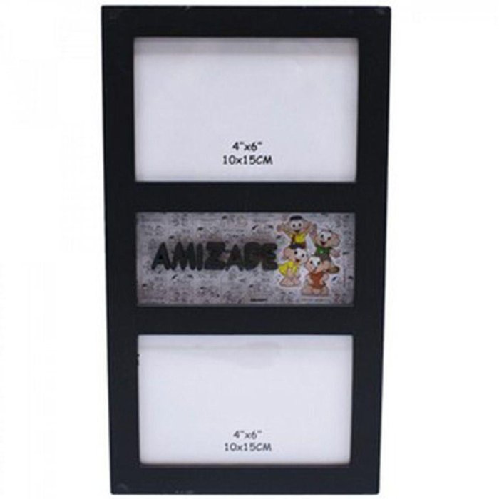 Porta Retrato Preto Amizade 2 Fotos: Turma Da Mônica Preto