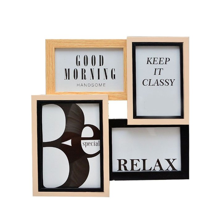 Porta Retratos Mont P/ 3 Fotos 10x15 e 1 13x18 Pop Home Continental Natural e Preto