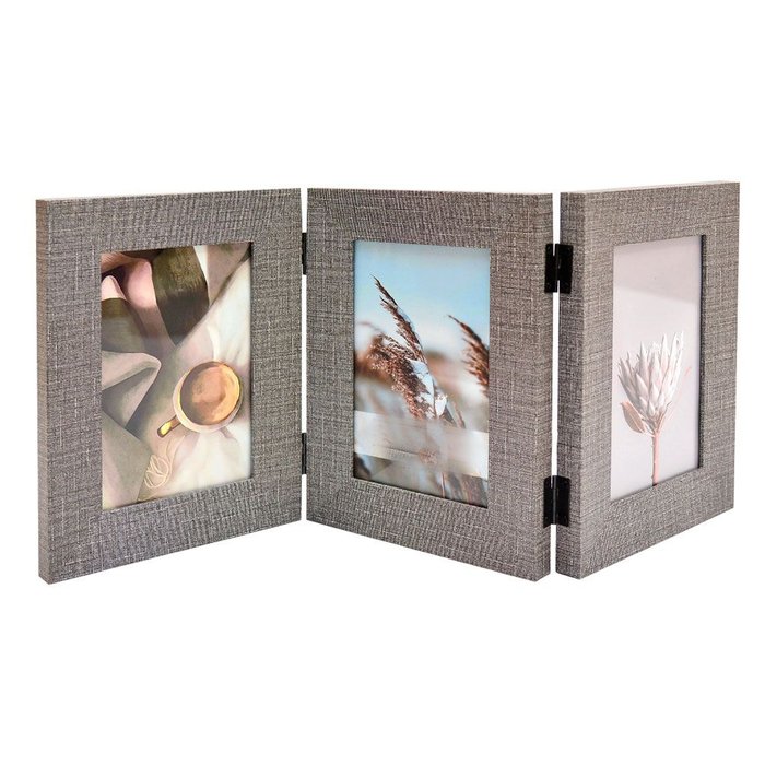 Porta Retratos para 3 Fotos Cinza Pop Home Continental