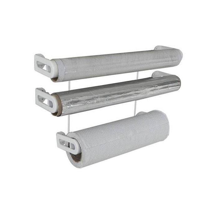 Suporte para Papel Toalha e Rolos 3 em 1, em Aço Termoplastificado E Plástico. Acomoda 3 Utilidades: 1 Rolo De Papel E 2 Embaladores.