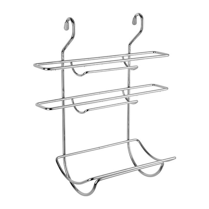 DESCRIÇÃO: Porta rolos com serrilha cromado contém 3 encaixes, onde 2 deles possuem serrilha para o corte do papel alumínio e PVC. O terceiro não possui a serrilha de corte e acomoda perfeitamente o rolo de papel toalha.