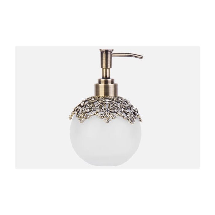 Porta-sabonete liquido com vidro jateado e metal dourado com aplicação em pedraria.Cor: Dourado Material: Metal