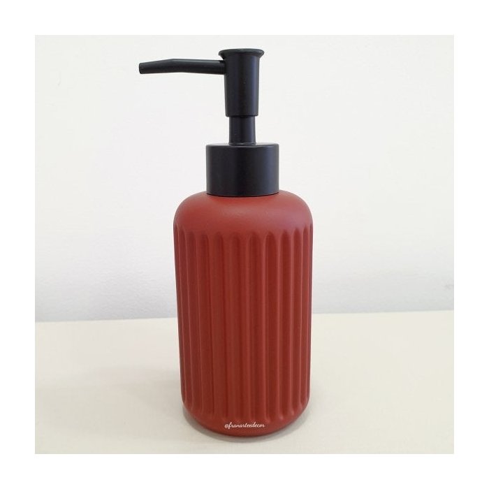 Porta Sabonete Liquido Vermelho Canelado de Cimento 17,5x6cm