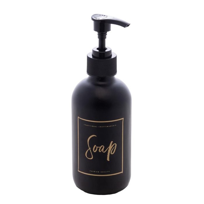 PORTA SABONETE LÍQUIDO DE Vidro FOSCO C/PUMP EM Plástico Preto 250ml Lyor