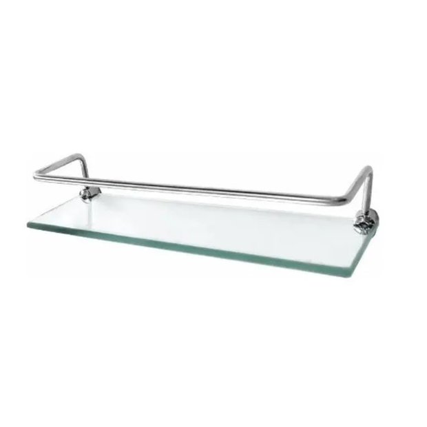 Porta Shampoo Luxo 40 cm Reto Alumínio Base Vidro 8 Mm incolor