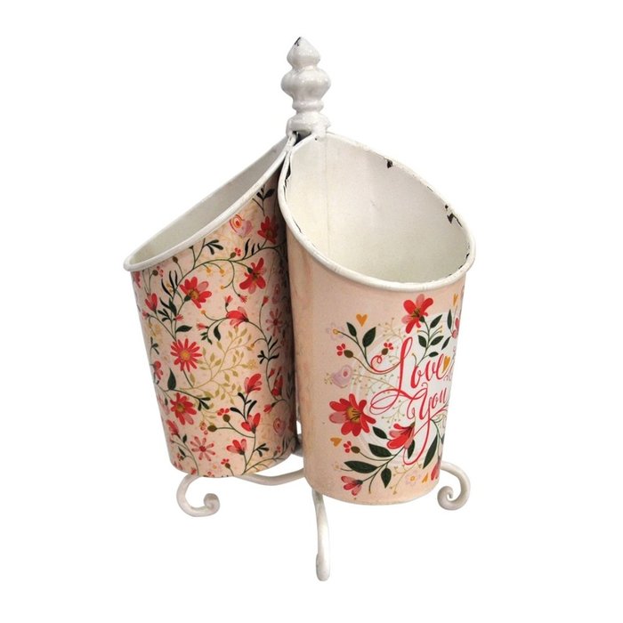 PORTA TALHER METAL ROMANCE FLOWERS 15,5 X 15,5 X 21 CM BTC Decor