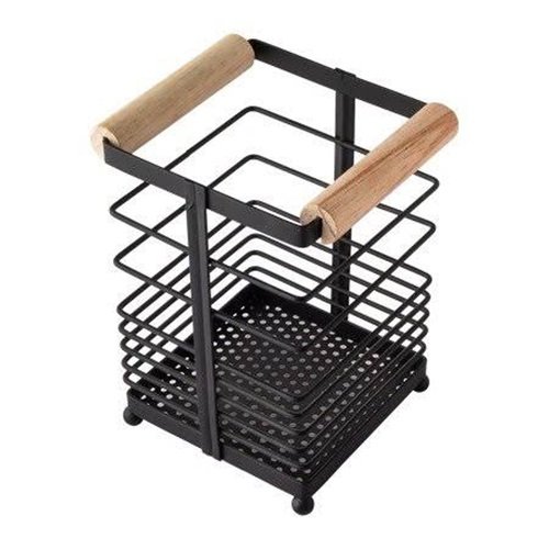Feito de ferro e acabamento em madeira, possui revestimento com bela pintura em preto, tornando-o uma peça sofisticada para acomodar seus garfos, facas e colheres de forma prática e adequada. Eficiente para a hora de lavar suas louças e um charme para a sua pia.