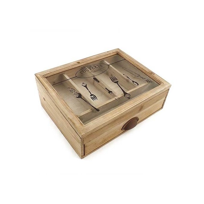 Porta Talheres Gaveta com Tampa de Vidro Oldway - Madeira