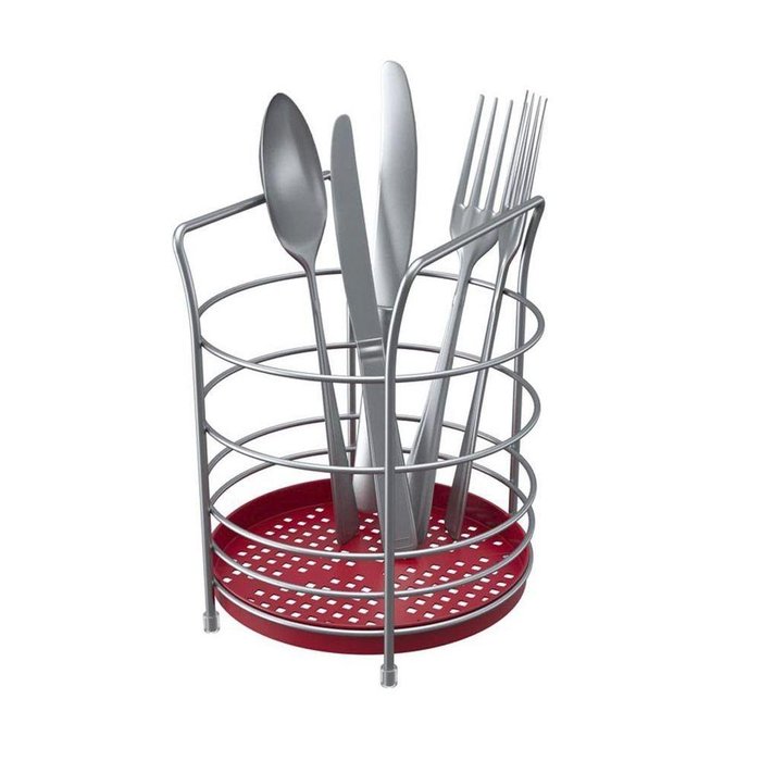 Porta Talheres Redondo Com Fundo Em Plástico Em Aço - Stolf Vermelho