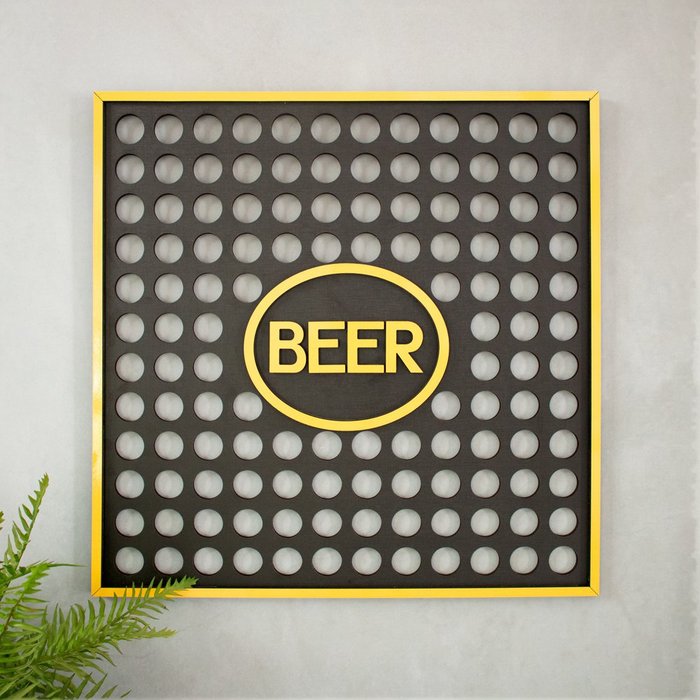 Porta Tampinhas em MDF Preto e Amarelo Beer - 50x50cm