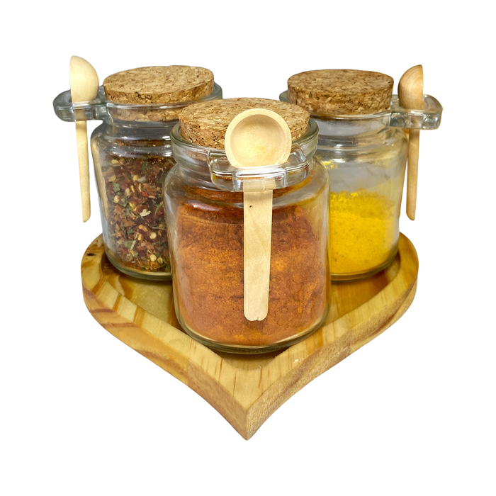 Porta Tempero - Ágora Coração Acompanha 3 Potes de Vidro com Colher de Bambu com 250ml com Rolha