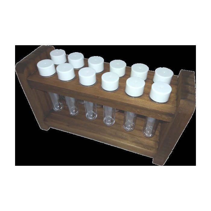 Porta Tempero/condimento Em Madeira Com 12 Tubetes:Tampas brancas