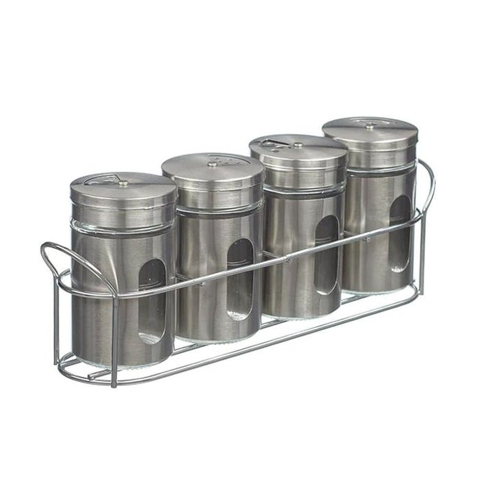 Porta Tempero Condimentos Aço Inox 4 Potes com Suporte Stray Mek Metálico