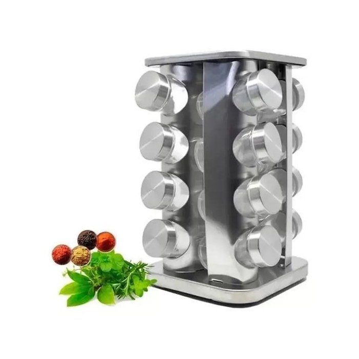 | Nome | Porta tempero e condimentos 16 potes giratório inox quadrado |