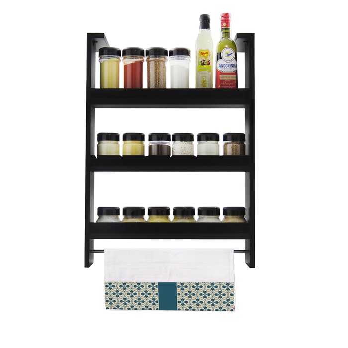 pO Porta Tempero de Geladeira da Arrigo Móveis é ideal para guardar vidros de azeite, vinagre, pimentas e demais condimentos da cozinha. Além disso, possui um 'varal' para poder pendurar seus panos de prato. - Marca: Arrigo Móveis - Modelo: ARMO143 Características: - Cor: Preto - Peso: 4,045 - Altura: 79cm - Suporta até 8kg - Comprimento: 48cm - Profundidade: 11cm - Comprimento útil: 45cm - Profundidade útil: 9,5cm - O braço possui 5cm largura - Material do porta tempero: MDF 15mm - Material da barra: tubo de alumínio - A barra possui 3cm de circunferência - Os braços possuem 10cm para poder fixar - A distância entre as prateleiras é de 17cm - Possui barra de proteção nas suas prateleiras - Possui dois 'braços' de 21cm para encaixe nos móveis - Acompanha com fitas dupla face 3mm nos braços para fixação nos móveis - Cabe em média 18 potes de temperos (Varia quantidade conforme o tamanho dos potes) Observações: Possuímos esse produto nas seguintes ações; - MDF 15mm Preto - MDF 15mm Branco Importante: - Acompanha parafusos e bucha para fixação. - Não acompanha objetos decorativos, bebidas, copos e taças. O produto já vai montado e pronto para fixação no local desejado. - Não deixar exposto diretamente ao sol e umidades excessivas. - Pode haver alguma diferença de tonalidade entre a imagem e o produto real, por conta do tratamento de imagens e a calibração de cores do seu monitor. - Ao receber a mercadoria, o recebedor deverá verificar as condições da embalagem, e caso haja alguma avaria que tenha afetado o produto, não assine o comprovante do transportador. - Montagem, desmontagem e outras instalações do produto são de responsabilidade do comprador. Itens Inclusos - 01 Porta Tempero Suspenso de Geladeira 3 Níveis MDF 15mm Garantia 6 Meses de garantia contra defeitos de fabricação. Foto do Produto Meramente ilustrativa, peças de decoração não acompanham os produtos, exceto se informado no anúncio. Todas as informações divulgadas são de responsabilidade do fabricante/fornecedor.