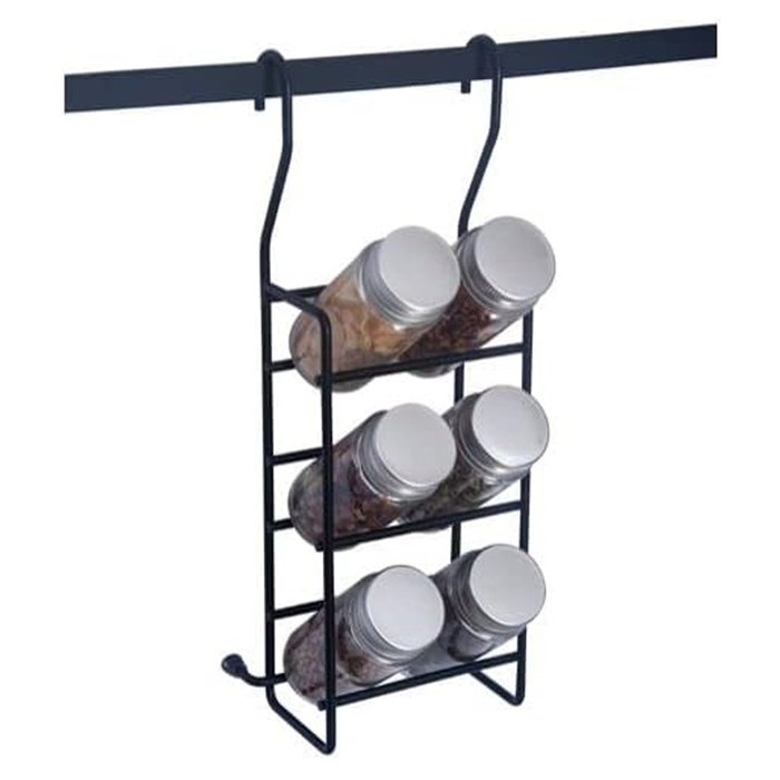 PORTA TEMPEROS COM 6 POTES VIDRO Cód. 2468 Medidas: 130x300x95mm Características: Organiza temperos Compatível com barras: Códigos 2452, 2453, 2454 Material: Aço carbono Acabamento: Pintura preta Insumos que acompanham: 06 recipientes em vidro 06 tampas em alumínio 06 dosadores Garantias: 3 anos 1 ano em região de maresia