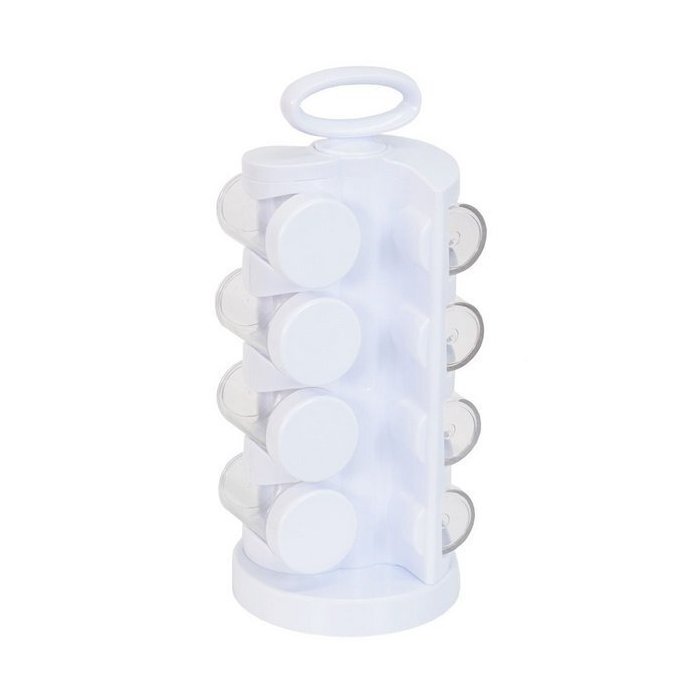 Mais praticidade e funcionalidade na sua cozinha. Isso é o que você conseguirá com este Porta Temperos com Suporte Giratório 08 Potes, acomode todos os seus TEMPEROS, ervas e 'segredos' da melhor forma, mantendo o frescor e o aroma dos seus produtos. Desenvolvido com material de qualidade, este potes são resistentes e duráveis. Práticos e muito úteis, são indispensáveis na sua cozinha. Este Porta Temperos ainda conta com uma base giratória, assim facilita o uso no dia a dia. Dimensões: 11 cm Largura X 13 cm Profundidade X 27 cm Altura.