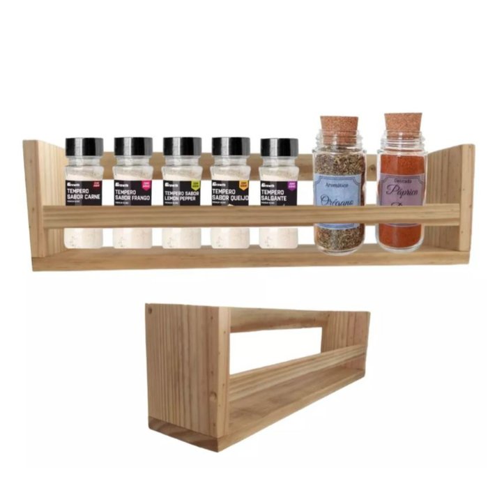 Porta Temperos Condimentos de Parede Madeira Pinus 48cm 2 Un
